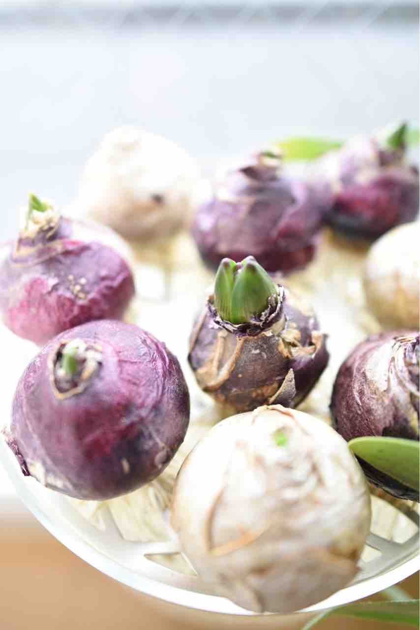 ヒヤシンスからすると、暗くて寒い冷蔵庫の中に入れられ、冬季の土中を擬似的に経験し、急に明るくて暖かい室内に出されて、春になったと勘違いし、慌てて芽を出したというところでしょう。