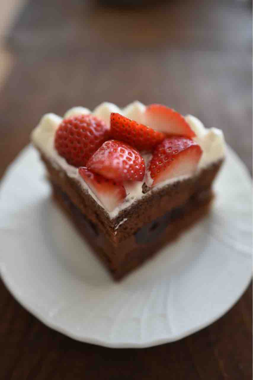 クリスマスケーキは「黒い森のケーキ」をアレンジして作りました。ココア生地のスポンジに、甘く煮たサワーチェリーとチョコレートクリームをたっぷりはさみました。内側の組立作業は息子がやってくれました。甘いケーキなので、エスプレッソを合わせたらすごくおいしかったです。