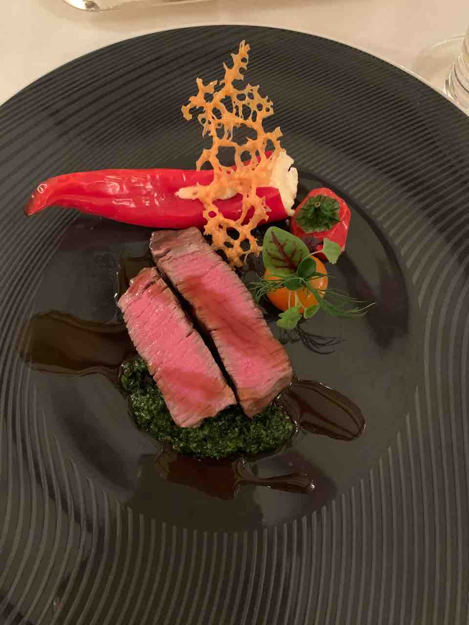 和牛フィレ肉の柔らかさとさっぱり感、チミチュリソースの心地よい刺激、チーズ入り万願寺唐辛子の濃厚さ、野菜の濃い色と味わいが絶品でした。