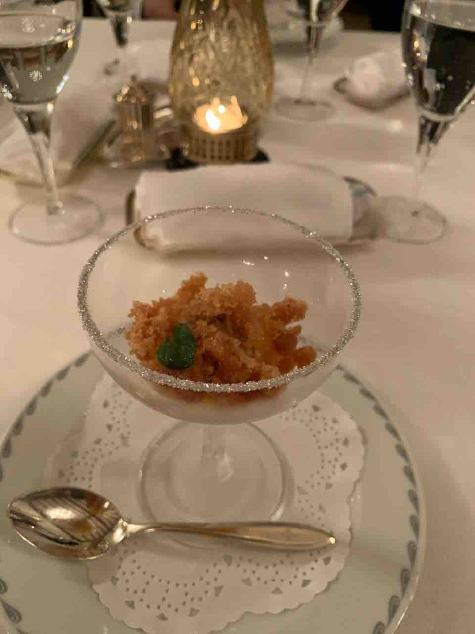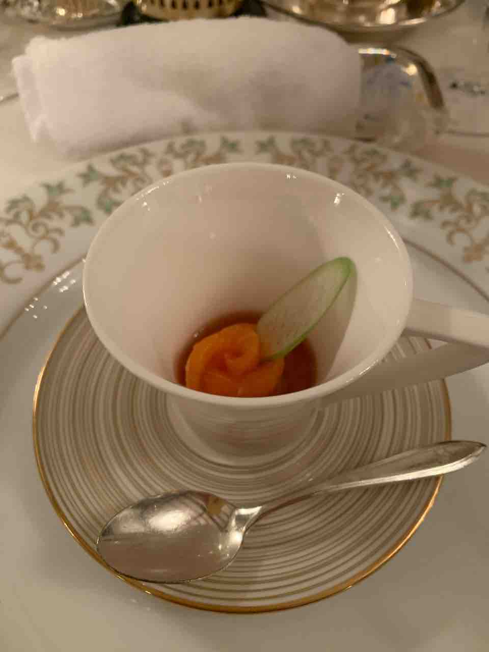 デザートは、最初に、「紅茶の氷菓子 伊東みかんジュレのアンサンブル」が出てきました。さっぱりとしていておいしかったです。