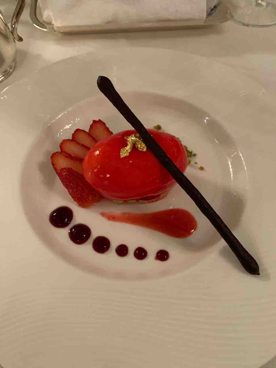 次に、「静岡県産紅ほっぺを詰めたマスカルポーネのムース ピスタチオとベリーのハーモニー」が出てきました。