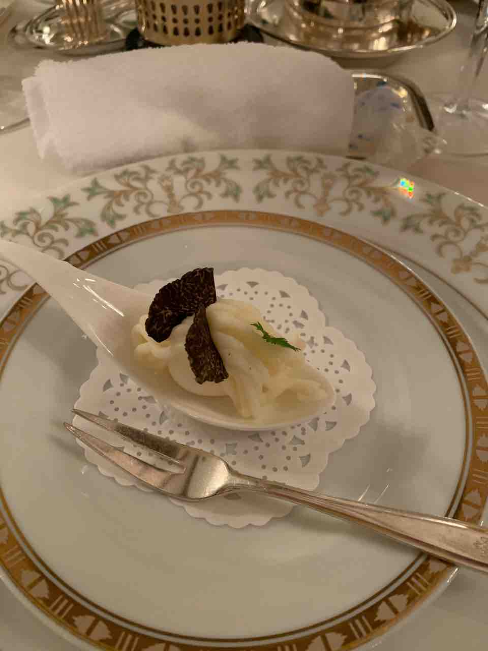 ゆり根で作られたモンブランの白さがまばゆかったです。やさしい味のゆり根とトリュフの濃厚な香りが合わさってすごくおいしかったです。