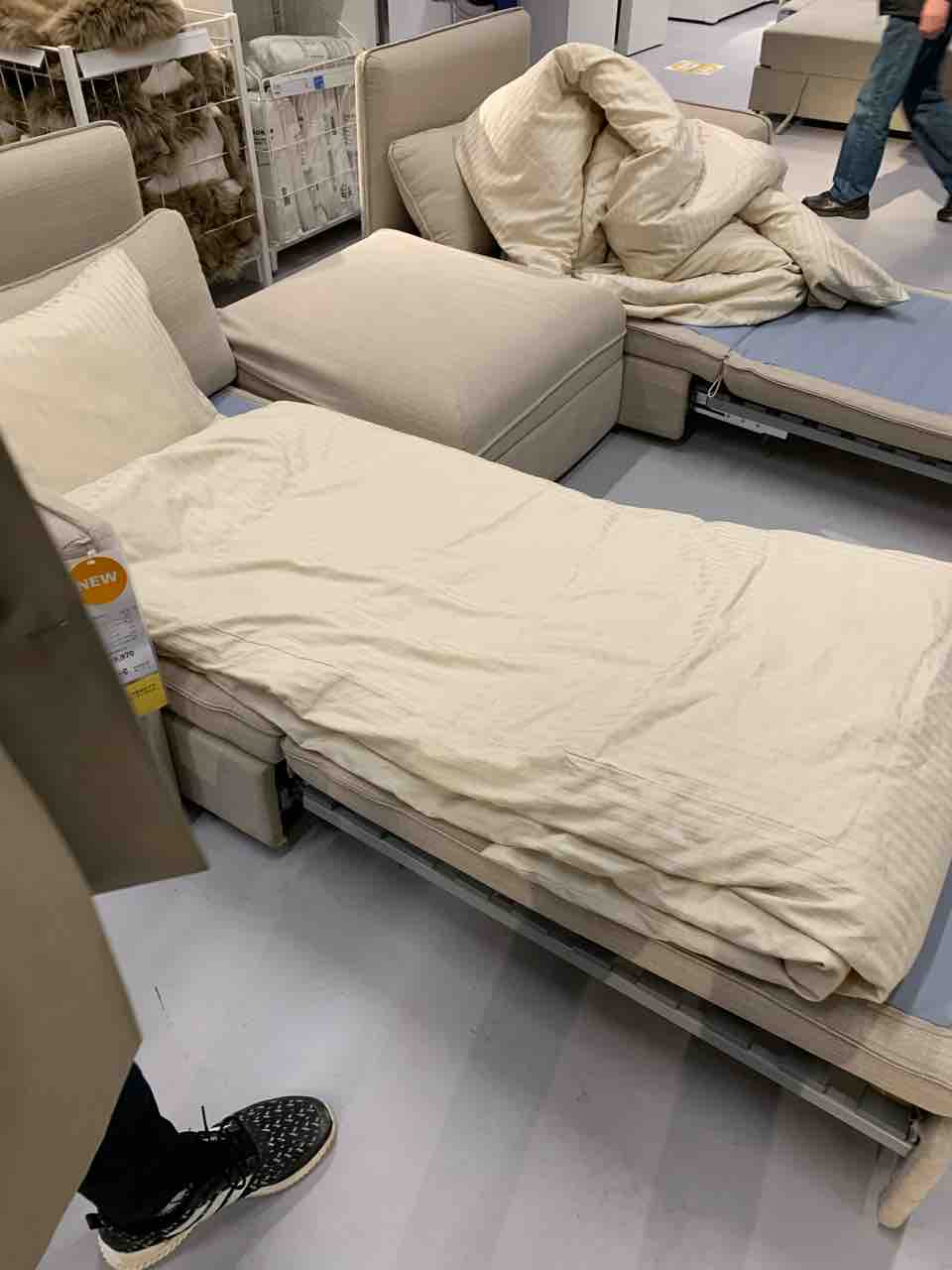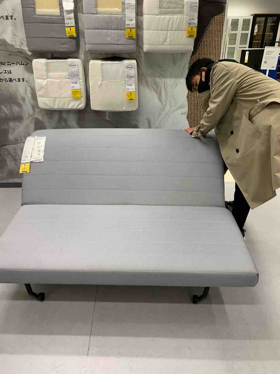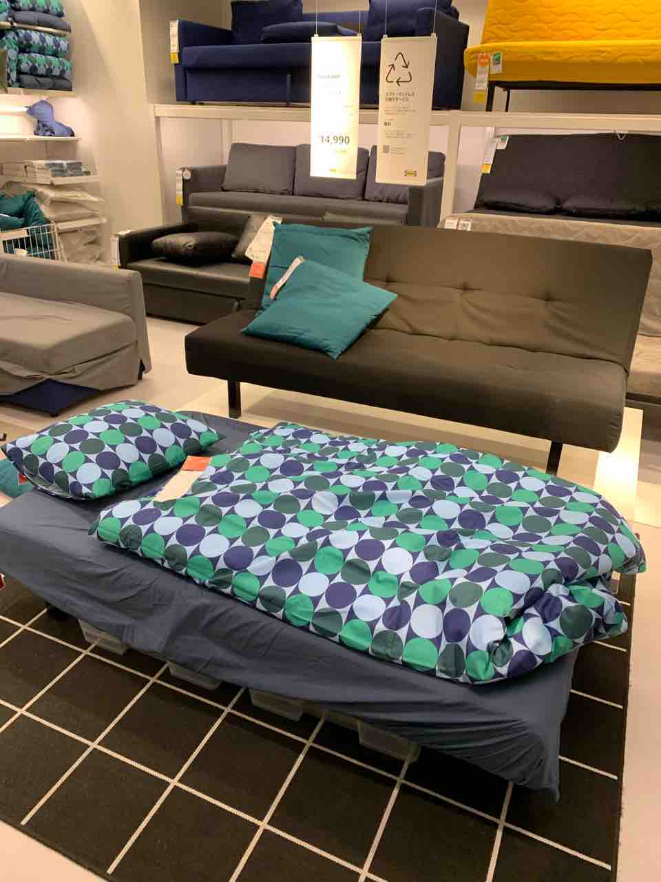 新居のリビングがすごく広いので、今持っているソファー(arflex のマレンコ)に加えて、ソファーベッドまたは脚つきのマットレスを置き、ソファーとしてもベッドとしても使えるようにしたいと考えました。IKEAは、ソファーベッドの取り扱いが豊富なのですごく参考になりました。