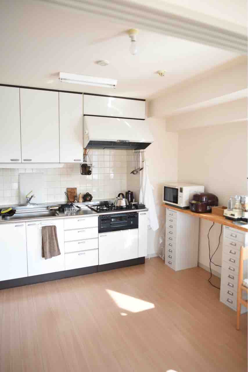 キッチンはとりあえず持っている家電ほとんど全て並べてみました。ただし、けむらん亭とキッチンエイドは物入れにしまってあります。キッチンが独立して、リビングから少し離れているので、調理器具を出しっぱなしにしても、意外と気にならなかったです。広いってこんな利点があると気づきました。