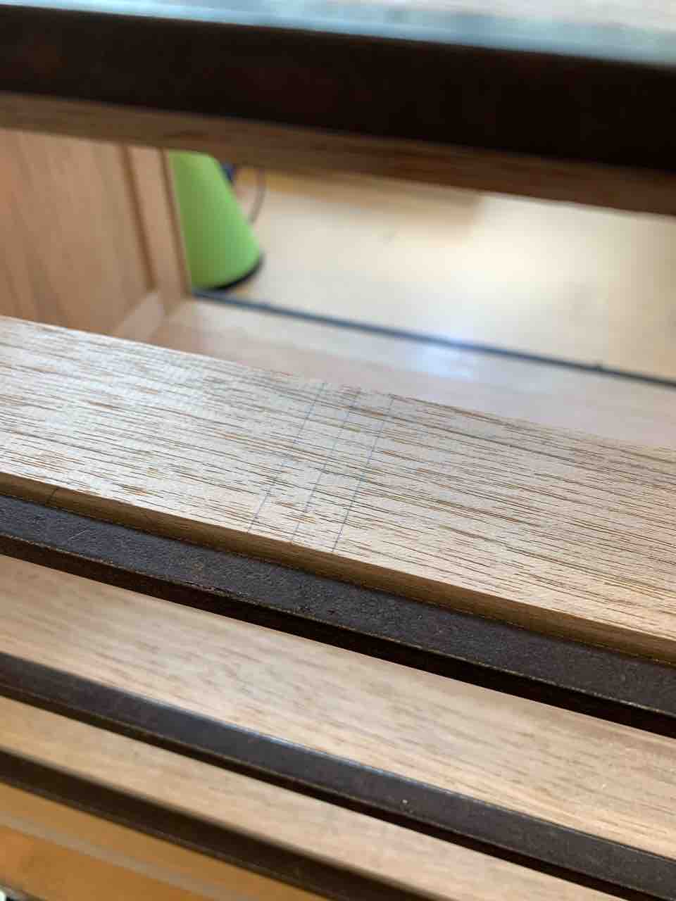 寸法確定した框組みの側板から桟が面一になるよう、ホゾの調整をしました。