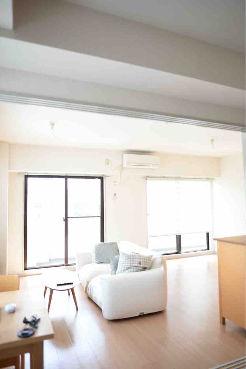 リビングに2カ所あるサッシのうち、1カ所は、とりわけ眺めが良く開放感があるので何も取り付けず、もう1か所には旧居で使っていたロールスクリーンを取り付けました。こちらは少し離れたところに建物があります。