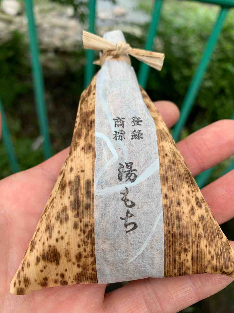 竹皮をほどいて開くと、純白のふわふわとしたもちがあり、口溶けが良く、中にサイコロ状に切った羊羹が混ざっていました。すごくおいしかったです。慌てて食べてしまったので、写真を撮り忘れました。すみません。