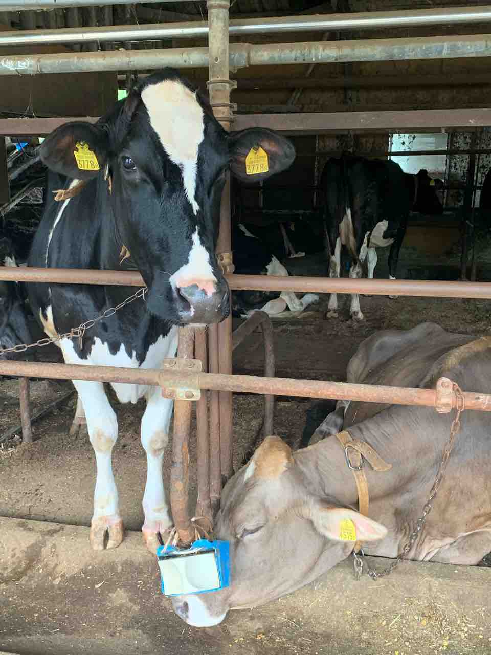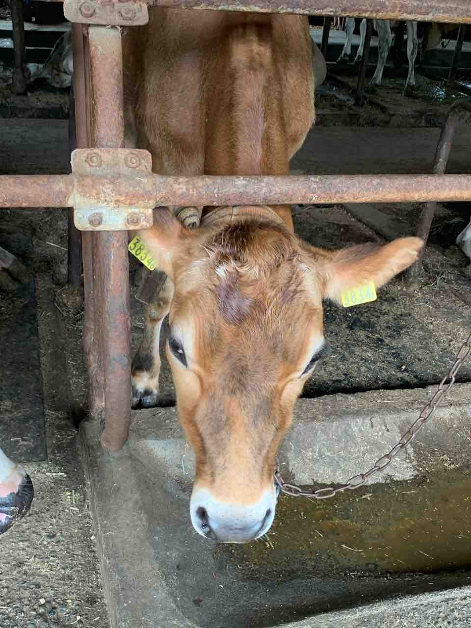 ぐっと近づいてみると、牛の方も気になるようで、口をもぐもぐ動かしながらこちらを横目でチラチラ見てきました。