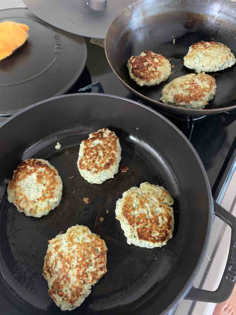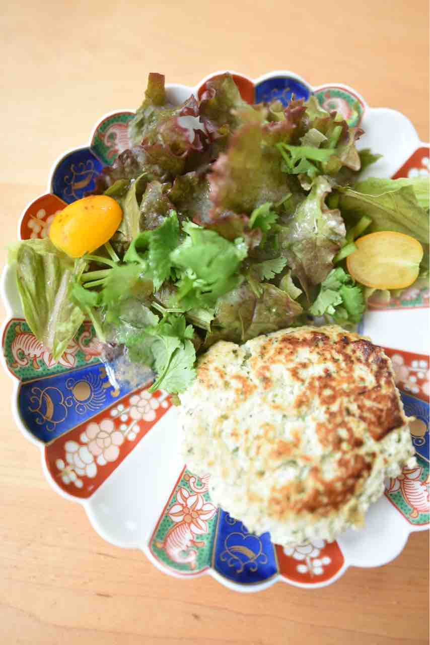 鶏挽肉、木綿豆腐、長葱、大葉 で豆腐ハンバーグを作りました。