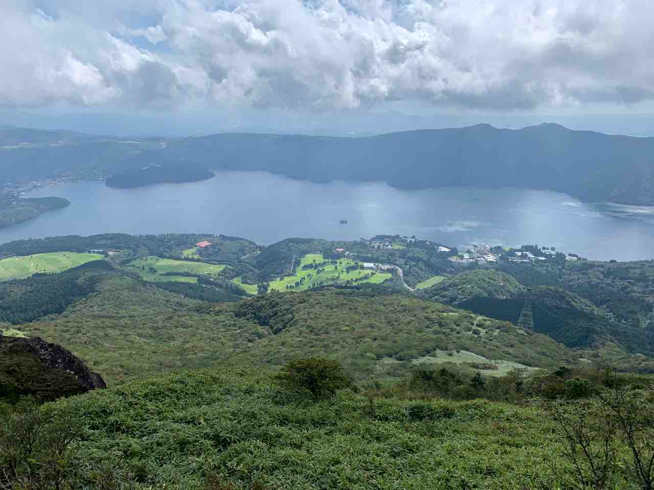 頂上からの景色です。こうしてみると箱根火山のカルデラの中に芦ノ湖がある感じがよく分かります。