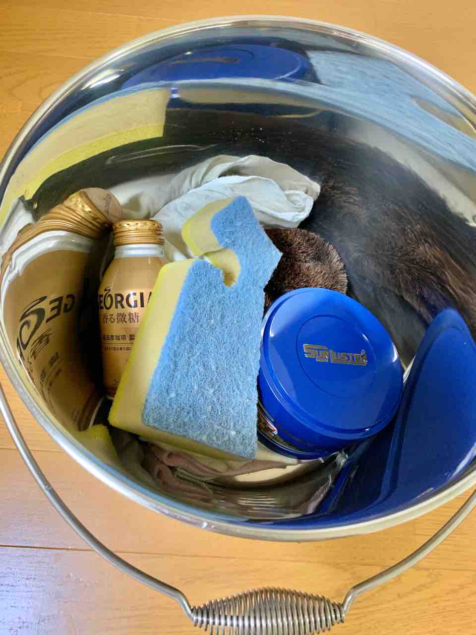 家に元々あるものをなるべく使い回そうと思い、マイクロファイバークロス、シュロのたわし、スポンジを選びました。シュロのたわしでタイヤのホイールを洗います。車両本体は石けんシャンプーを泡立てて風呂用スポンジで洗えばすごくきれいになります。髪も車も一緒かい!と突っ込みが入りそうですけど、一緒でいいんです。新たにプラスチック容器を買わないようにしようと思い、石けんシャンプーはアルミの空きボトルに入れました。