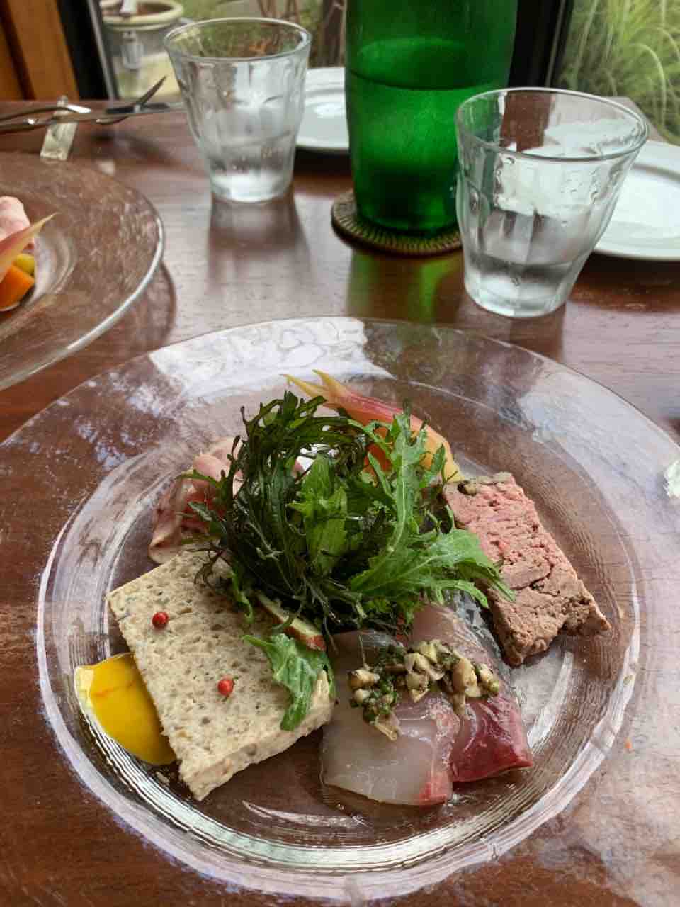 自家製ハム、ピクルス、パテ、魚のマリネ、帆立のテリーヌ など。