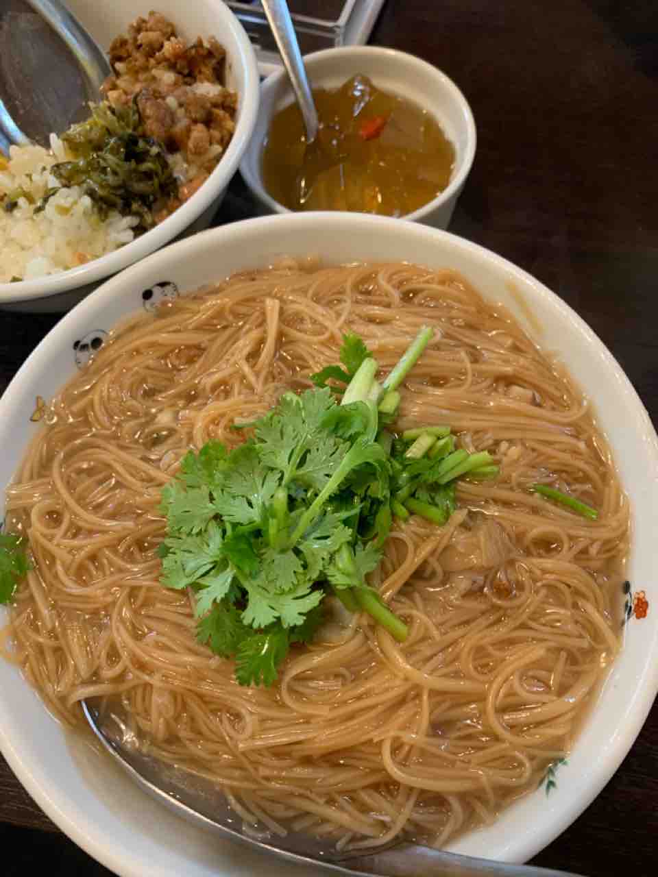 次に、大腸麺線が来ました。モツとアサリの出汁を吸ってパンパンになったそうめん、といった感じの麺料理でした。独特のコクがあってこちらもおいしかったです。