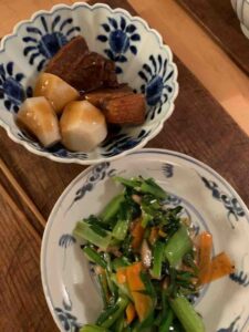 豚ばら肉のブロックを買い、電気IH圧力なべで角煮にしました。それとは別に、里芋を出汁で薄味に煮て、炊合わせにして食べました。