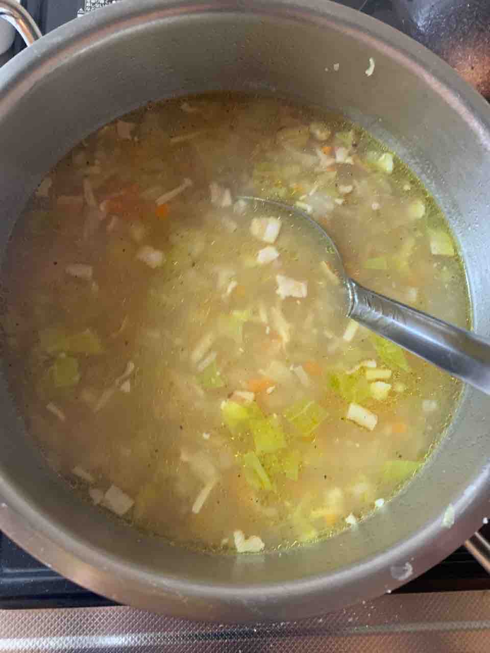 ロゴスキーのボルシチがおいしかったので、ビーツはないけど、自分なりに野菜スープを作りました。昆布と煮干で出汁を取り、ベーコン、玉ねぎ・セロリ・人参を小角に切って炒め、えのきだけ、キャベツ、じゃがいも も加え、仕上げにトマトピューレを少し加えました。シンプルだけどしっかりとうまみがあってすごくおいしかったです。