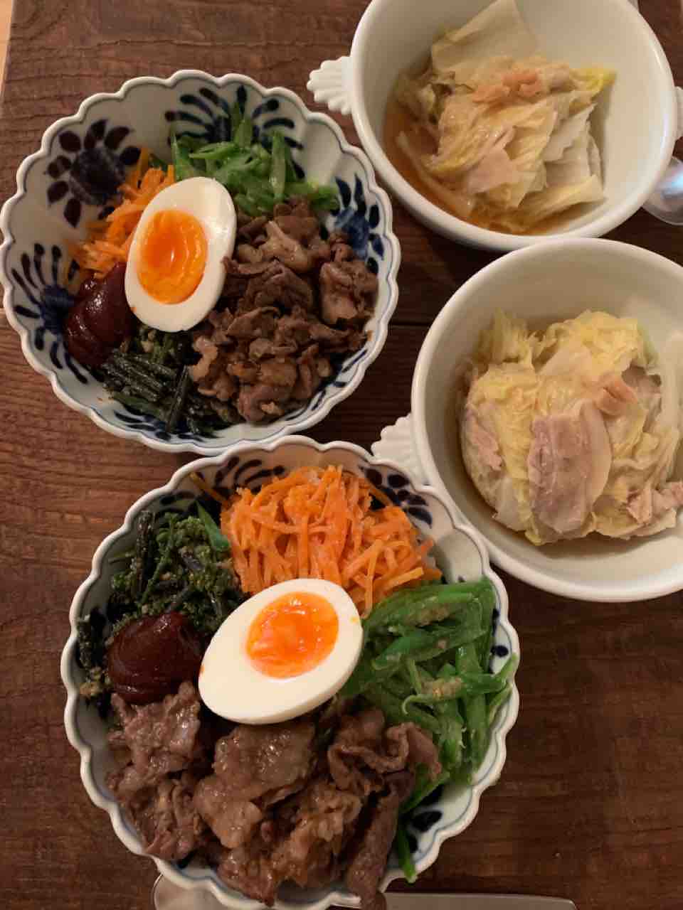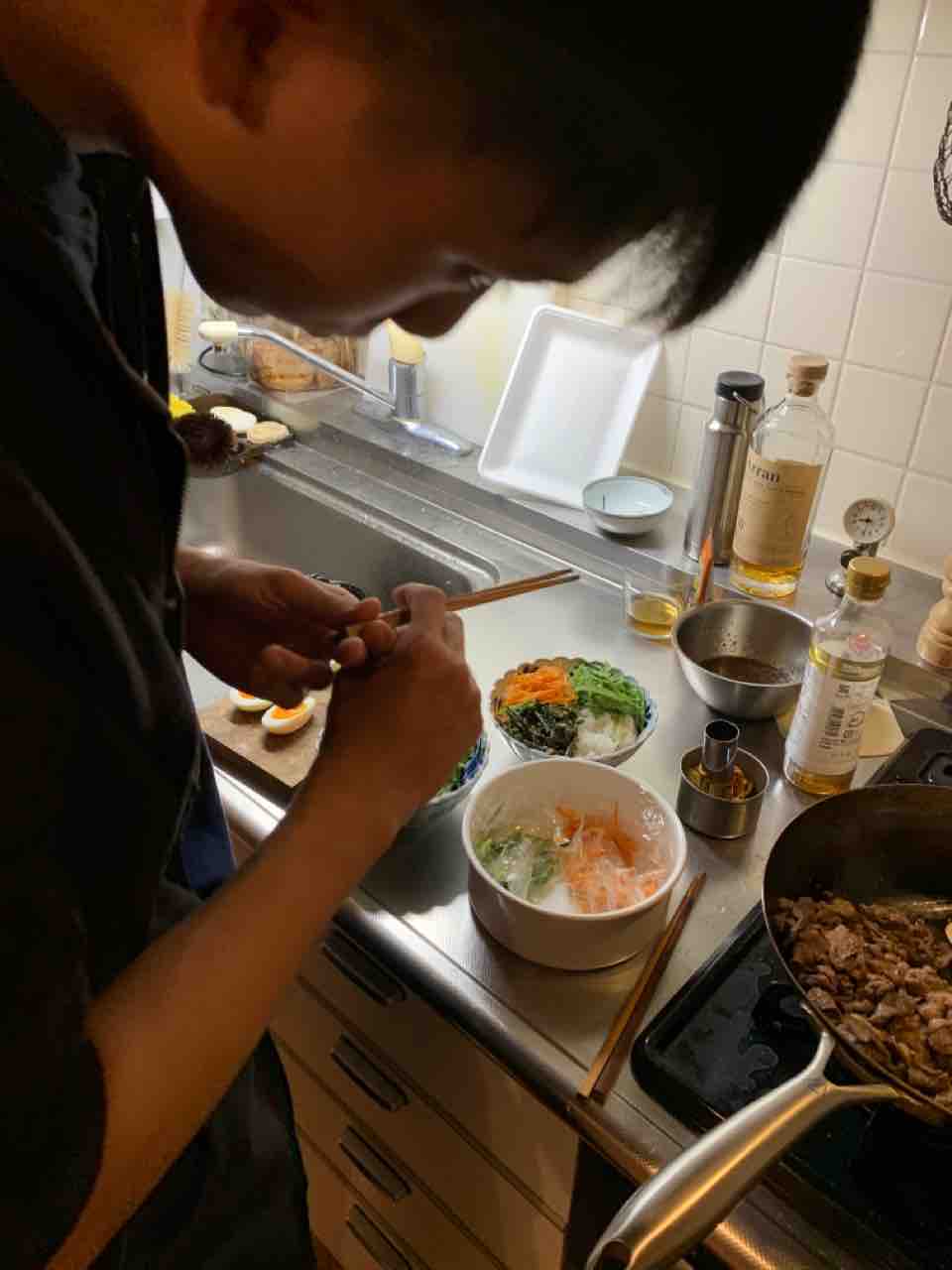 この日は、冷凍して持っていたわらびをまた解凍して、ビビンバも作りました。
