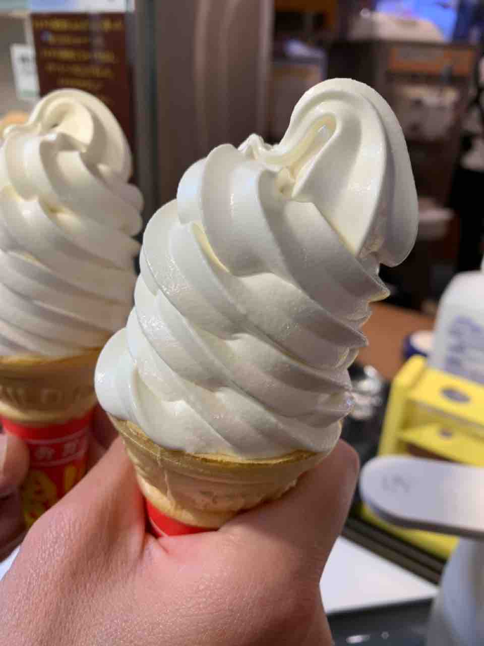 杏仁ソフトクリームを買って食べました。甘くて良い香りがしておいしかったです。
