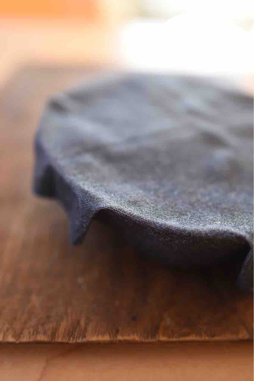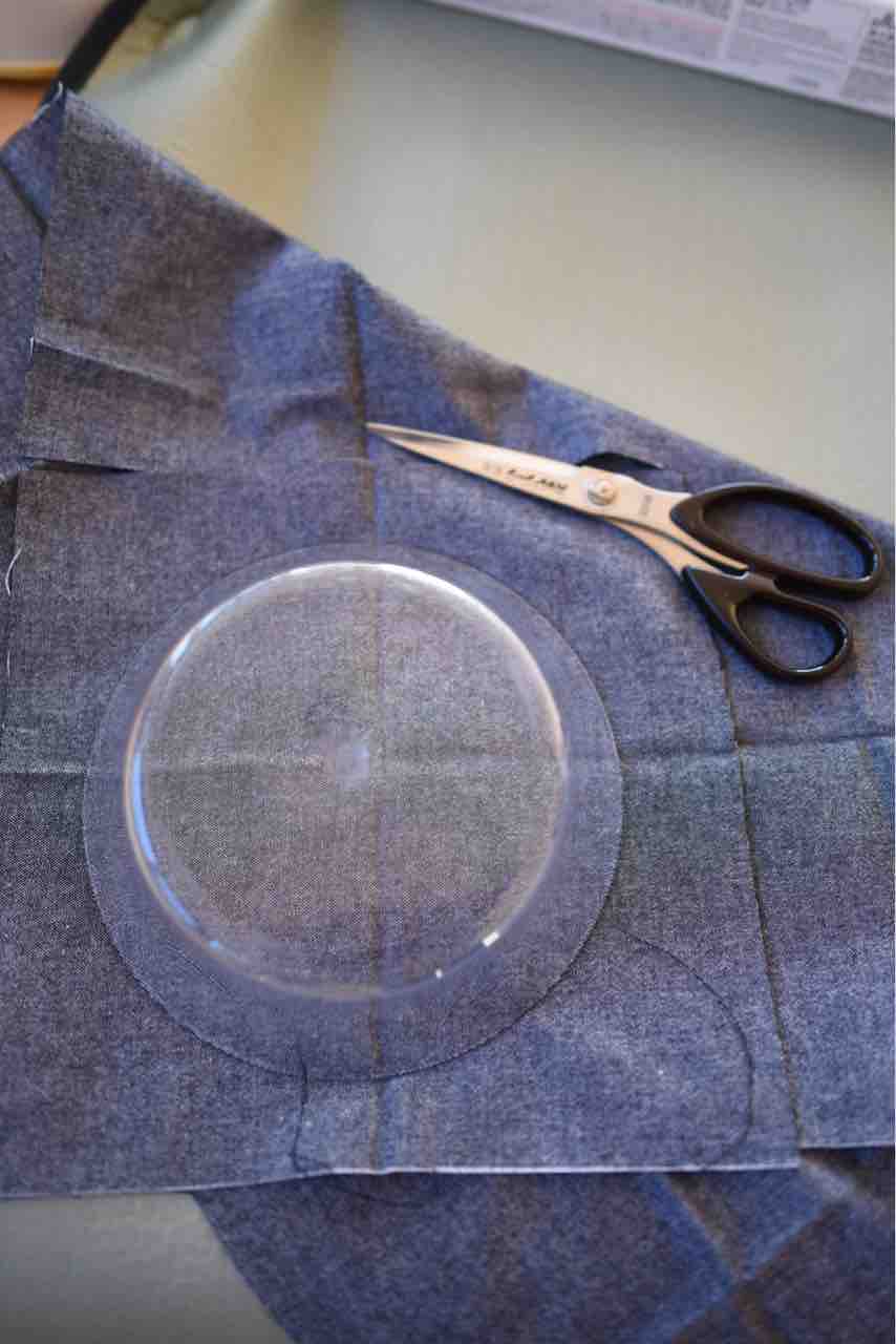まず、裁ちばさみで布を切り出します。私は、良く使う器に合わせて丸く切り出しました。
