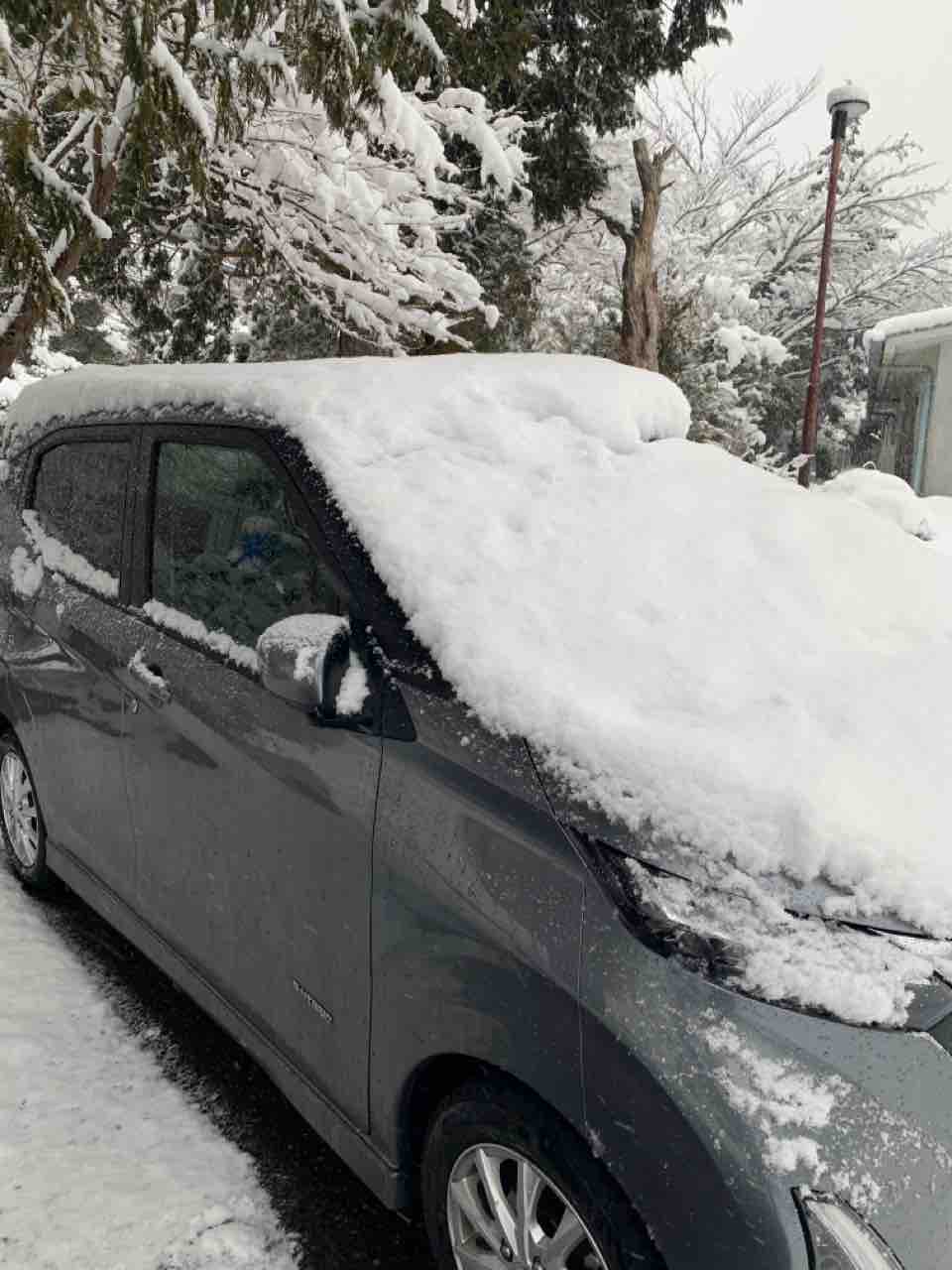 私の車も雪がそれなりに積もっていました。ワイパー上げるの忘れました。雪道の運転はしたくないから、溶けるまで動かさないつもりです。