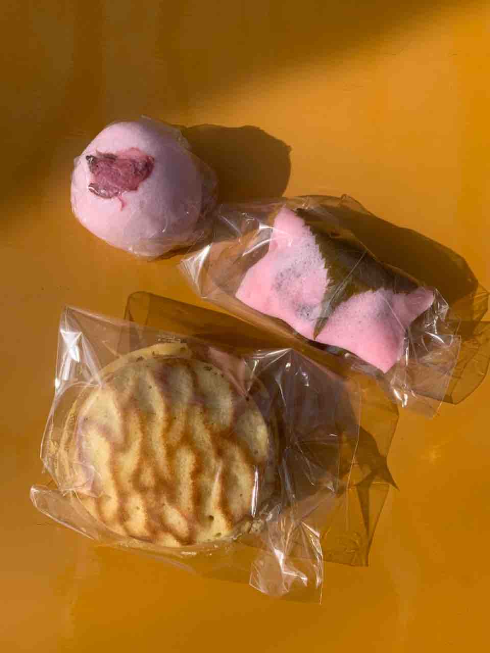 公園近くの和菓子店でおやつを買い、ベンチに座って食べながら観梅しました。こっちは桜餅ですが。