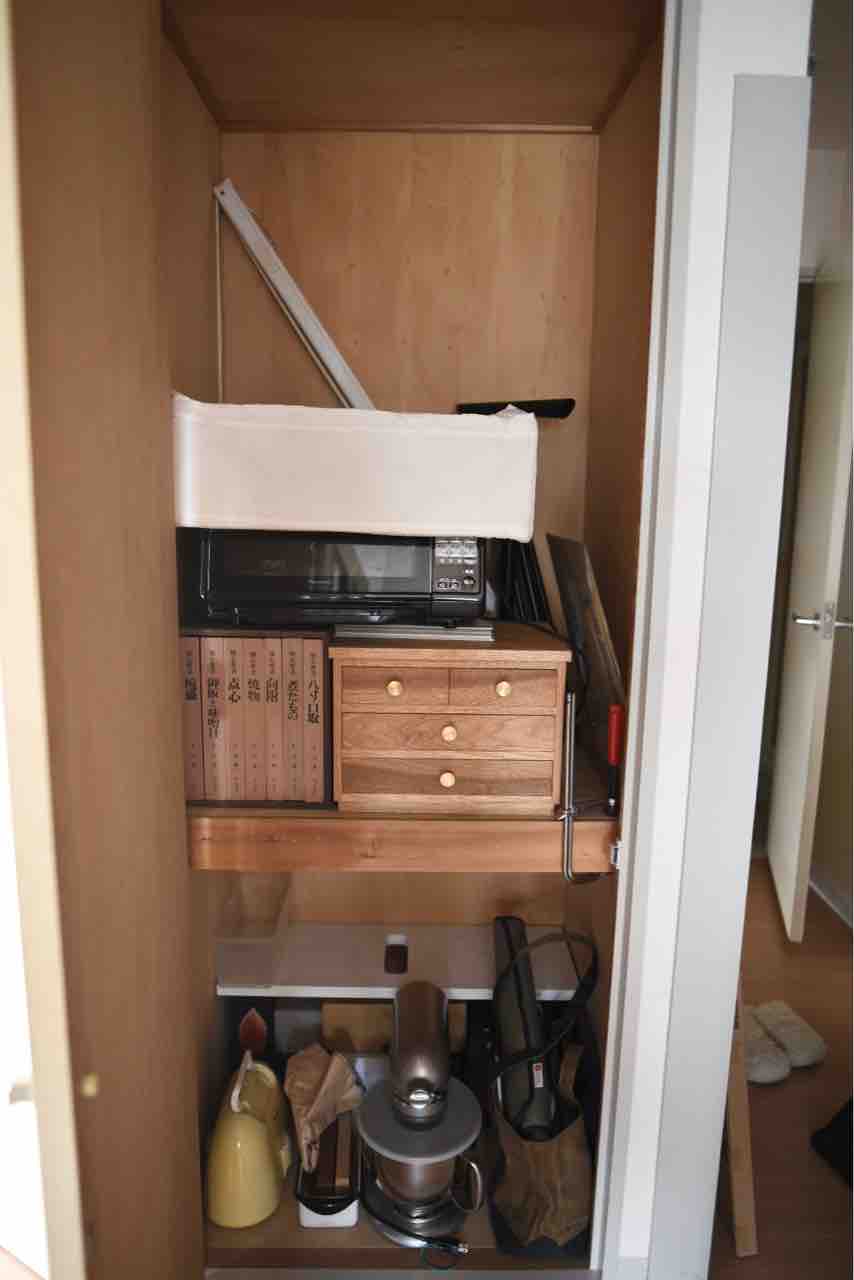 玄関を上がったところに、半間(押し入れの半分サイズ)の物入れがあります。