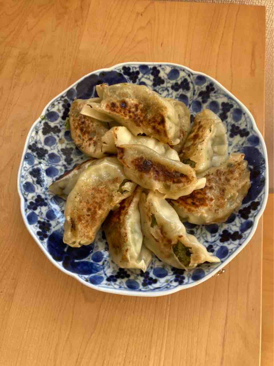 お友達が餃子を作ってみたいというので、(皮は市販ですが)いつも作っているやり方で一緒に餃子を作りました。中に入れたのは、サラダ白菜、ターサイ、長葱、ニラ、ひらたけ、豚ひき肉 でした。