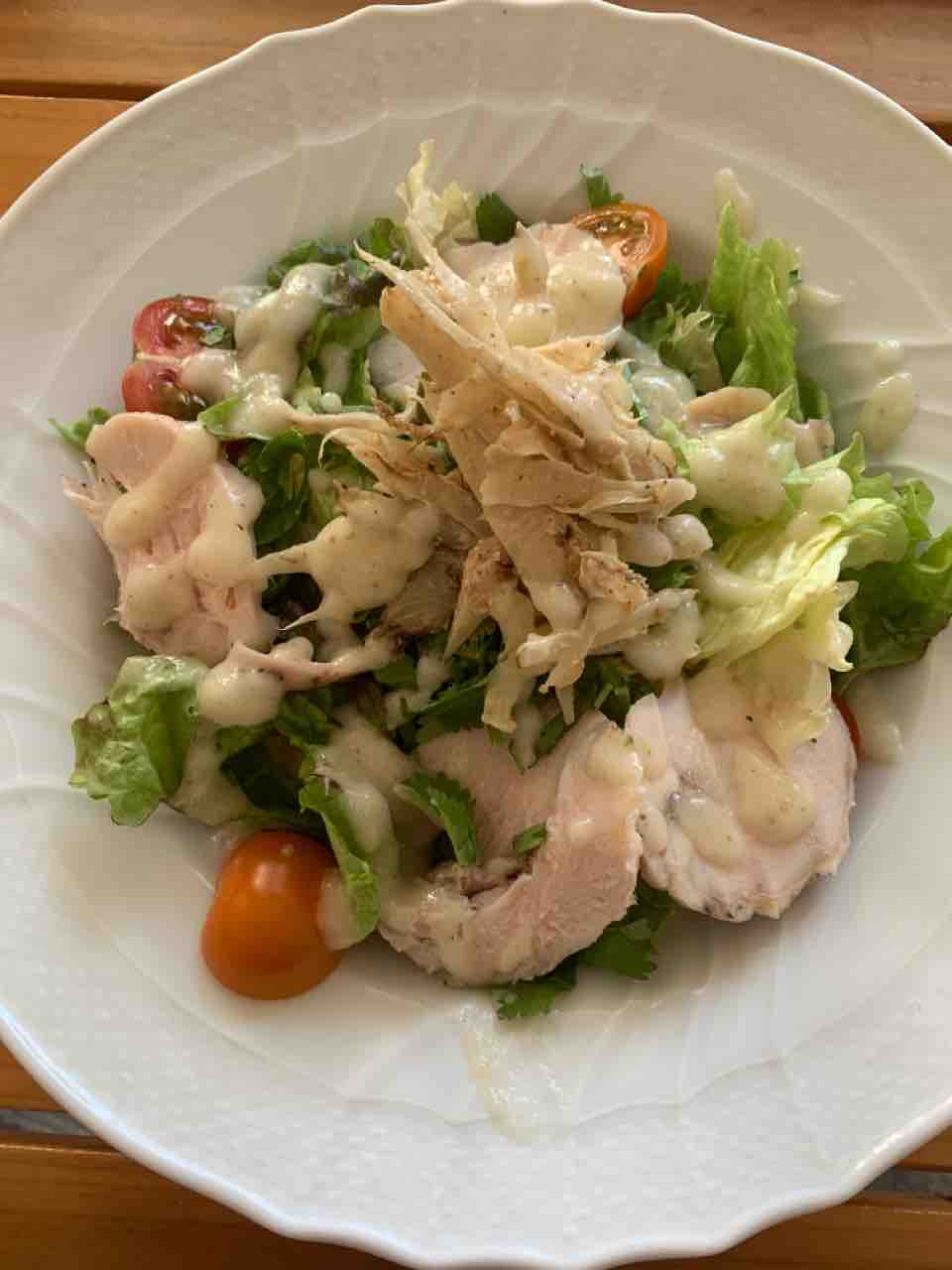 このごぼうサラダ、鶏ハム、サニーレタス、パクチー、ミニトマト でサラダを作りました。すごくおいしかったです。