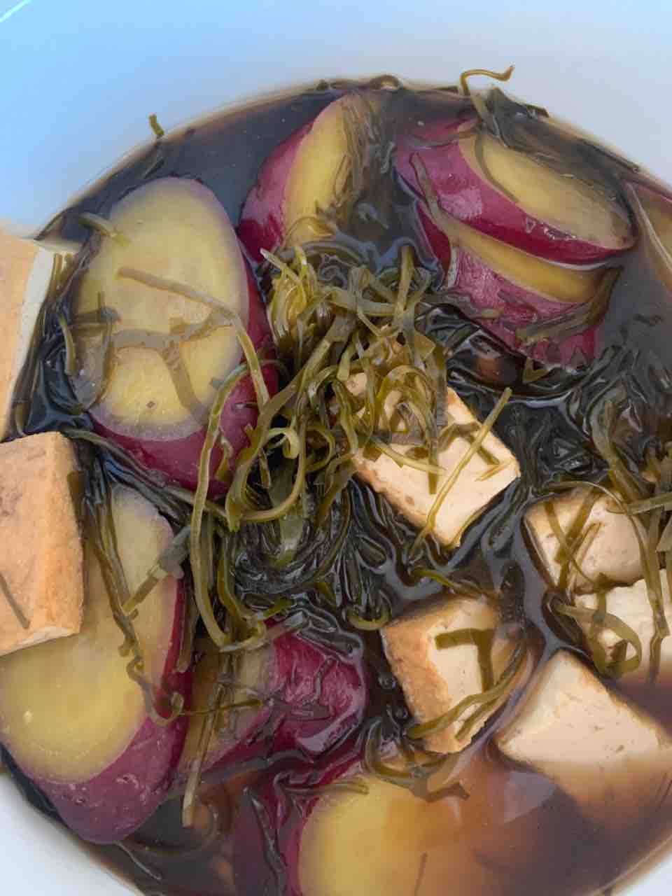 厚揚げ、さつまいも、切り昆布 で煮物も作りました。これは、山と海の味が同時にするもので、時々作ります。