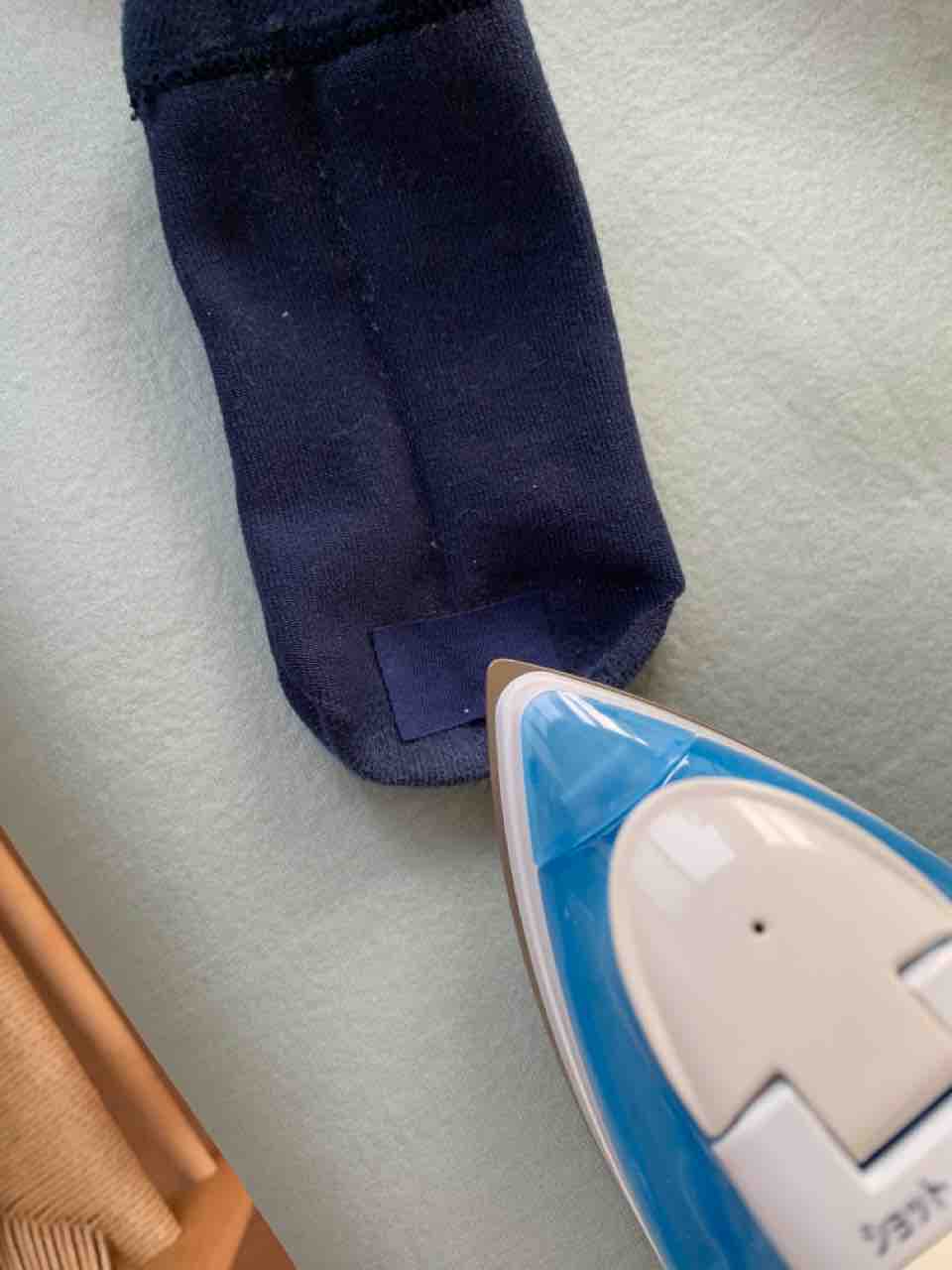 この靴下は、1年くらいでつま先やかかとが薄くなってくるので、アイロン補修布を使って繕います。
