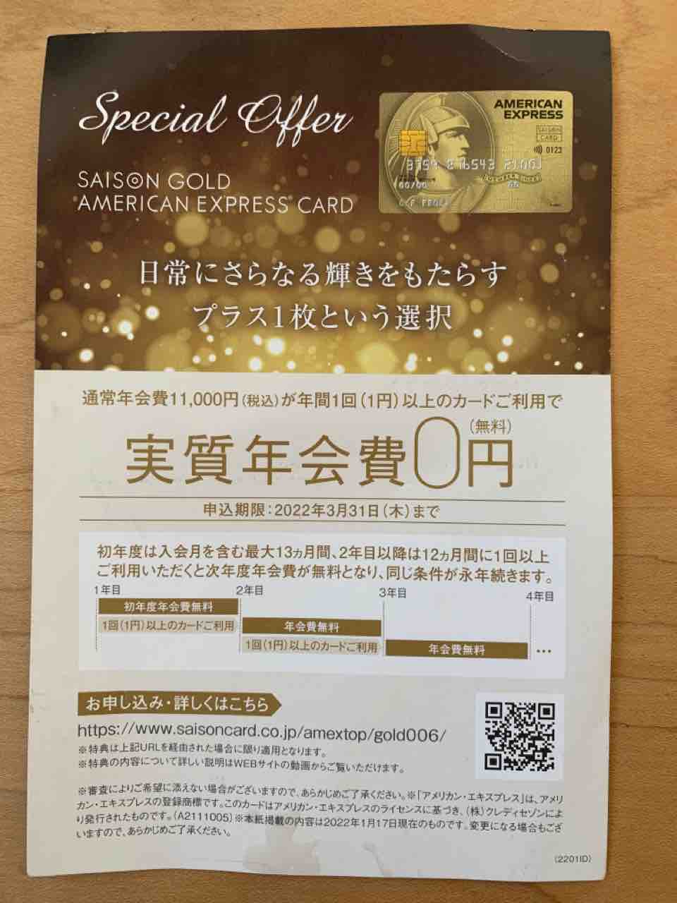 そうこうしているうちに、セゾンゴールド・アメリカン・エキスプレスのスペシャルオファーのハガキが来ました。