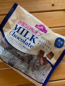 ところで、最近、マックスバリュで良いものを見つけました。糖質50%OFFのミルクチョコレートです。