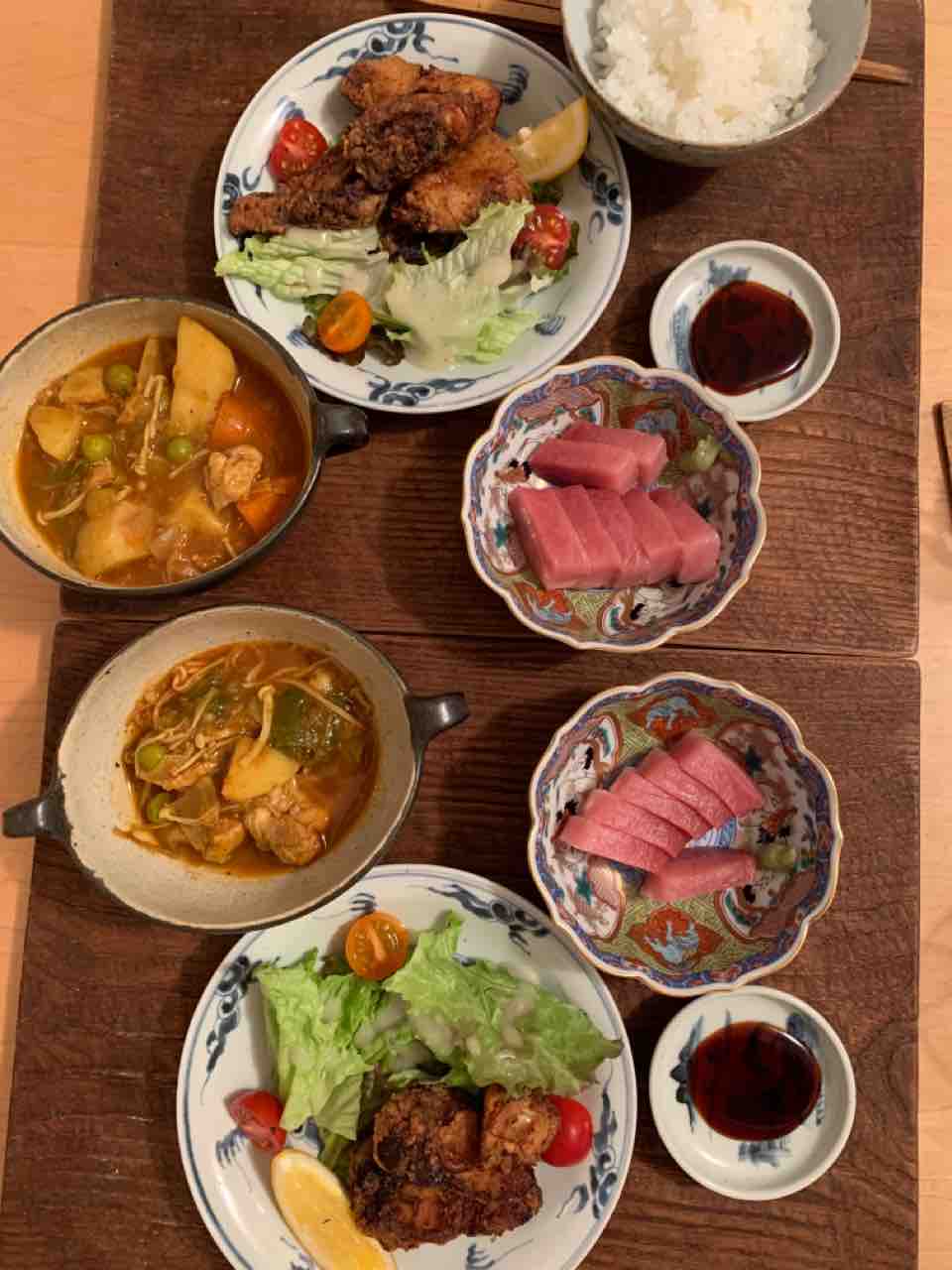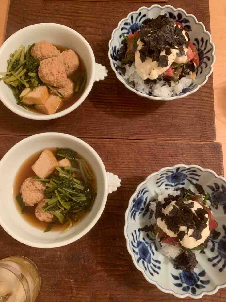 近所のお魚の鮮度の良いスーパーで、天然本鮪の切り落としが安く売られていたので買い、大和芋をすりおろして山かけ丼にしました。