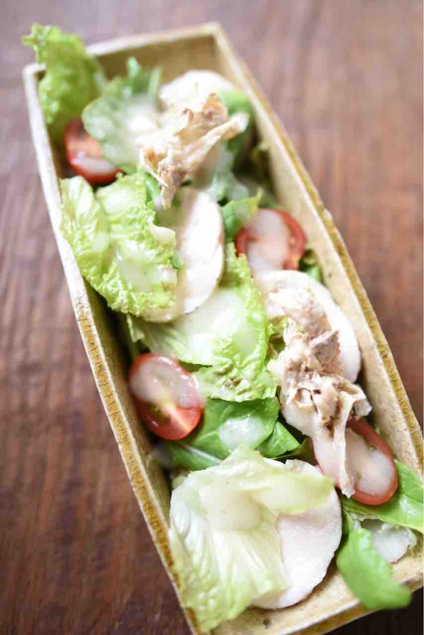 またある時は、レッドロメインレタス、鶏ハム、ごぼうサラダ、カラーミニトマト でサラダも作りました。