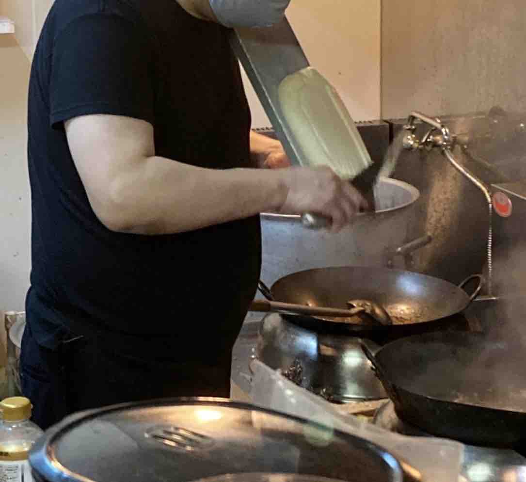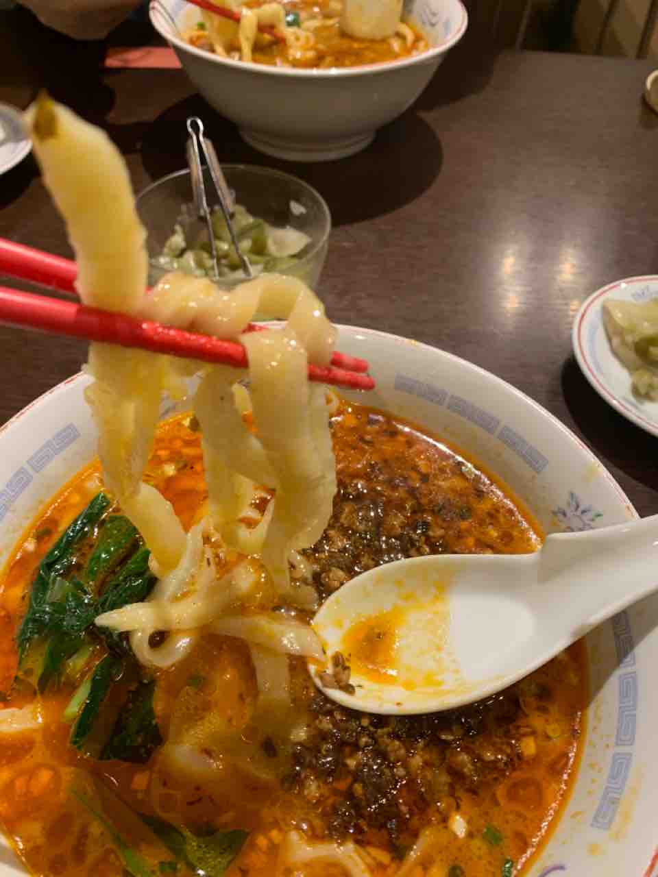 刀削麺の担々麺を頼みました。シェフが刀削麺を削っているところを見せてもらえたのですが本当に素晴らしかったです。