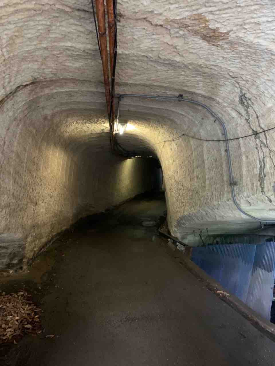 これは広大な敷地内にある岩盤をくり抜いた隧道です。