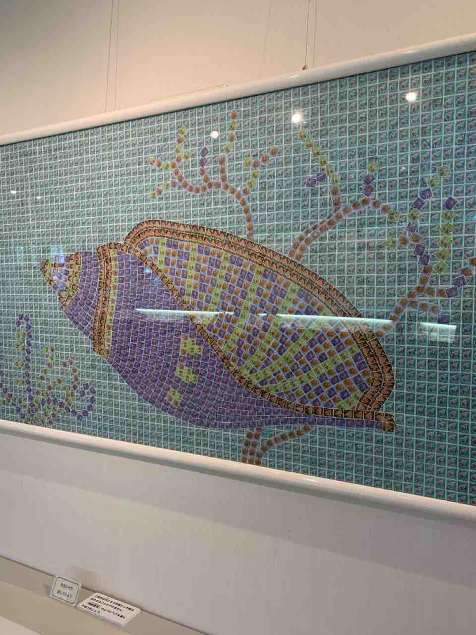 貝の壁画があるなーと思って近づいたら、貝の切手を集めてコラージュしたものであったり。