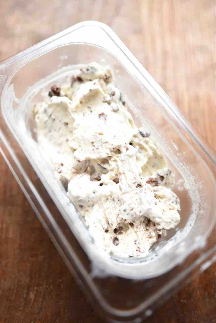できあがったアイスを3時間ほど追加冷却して食べてみたところ、スーッとするミントの香りと、牛乳や生クリームのなめらかさ、チョコチップの軽い食感が合わさって絶品でした。