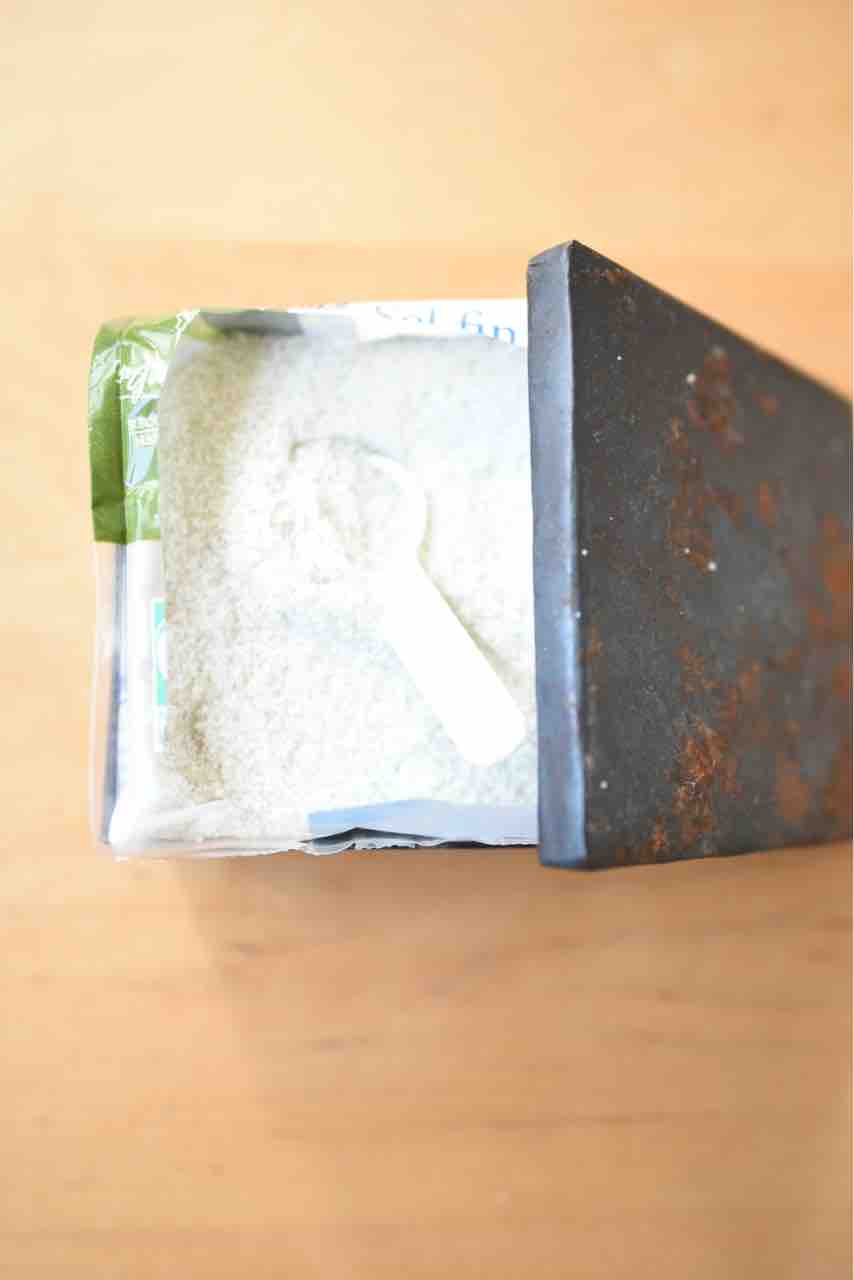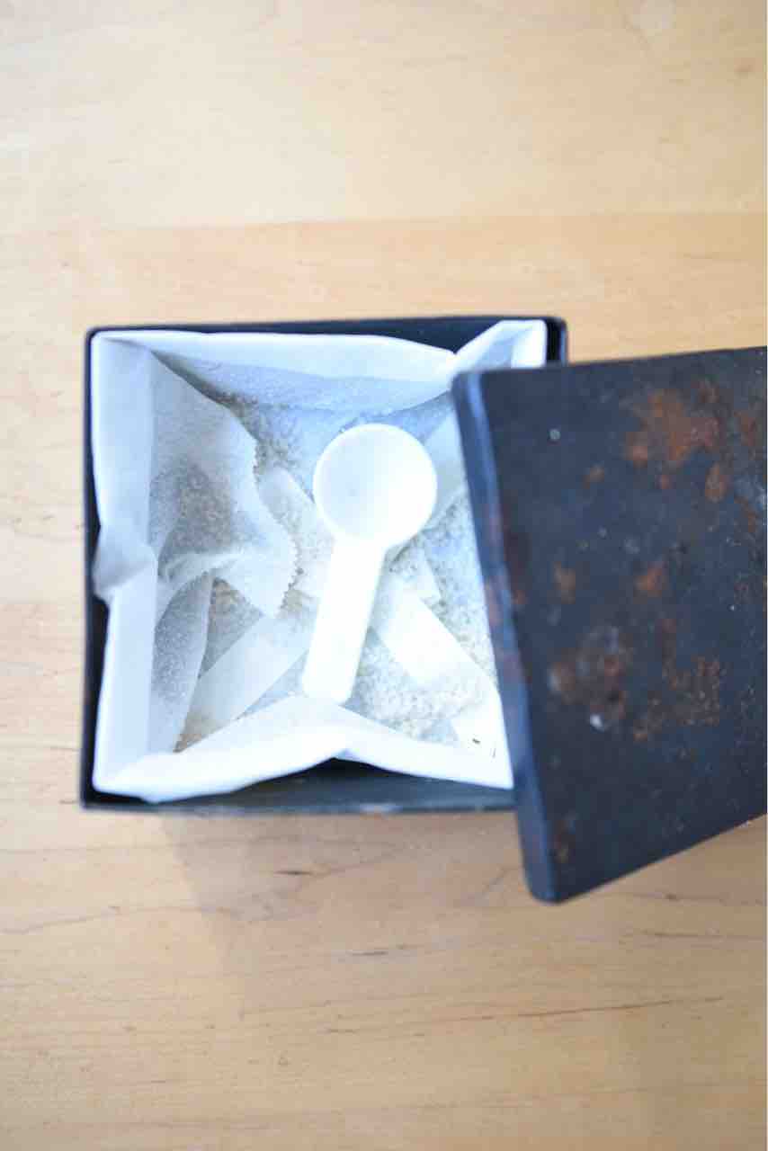 これまではボックスの中にオーブンペーパーで紙箱を作り、その中に塩を入れていましたが。