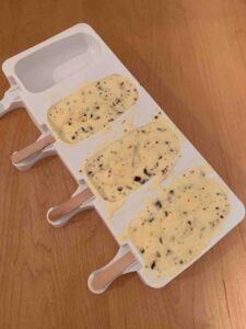 容器に作ってスプーンですくって食べるよりも、アイスバーの形になっていた方が食べやすいのではないかと思い、シリコンのアイスバー型で試してみることにしました。
