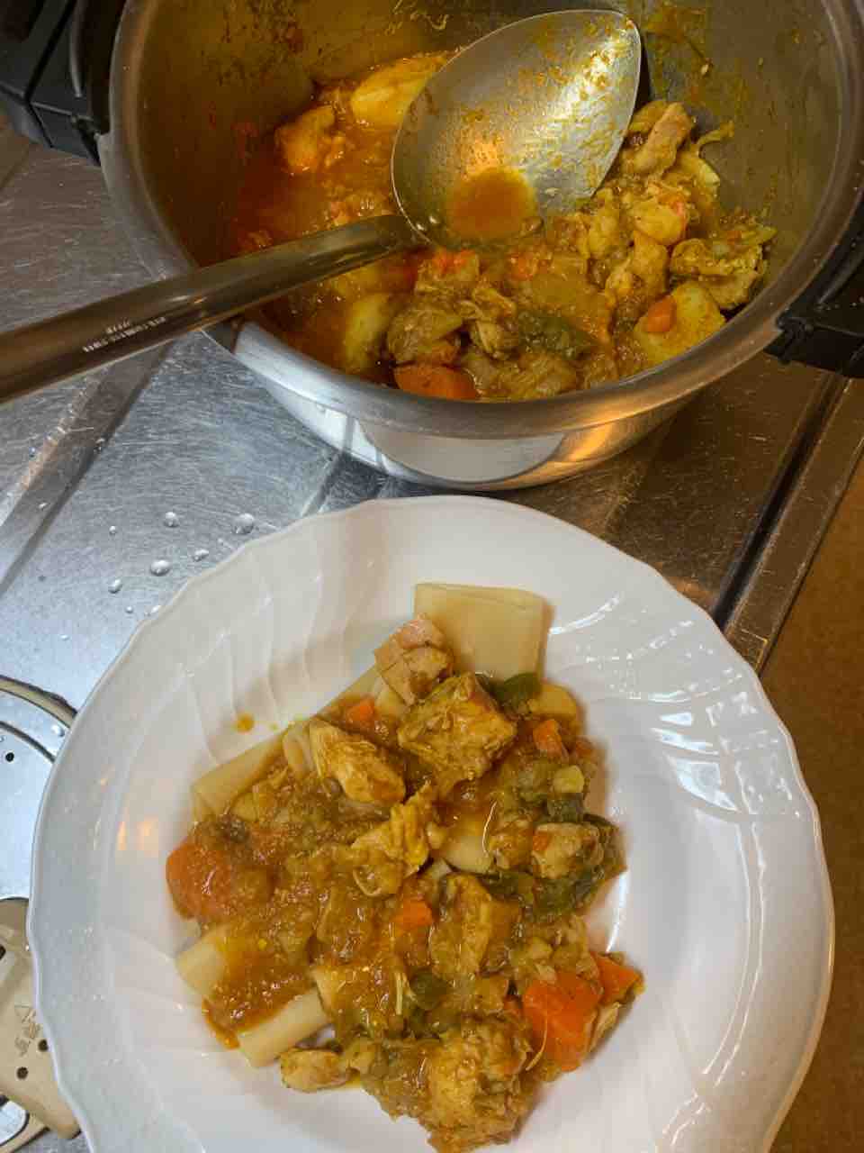 鶏もも肉、玉ねぎ、人参、ピーマン、椎茸 でスパイスカレーを作り、ショートパスタにかけて食べたり。