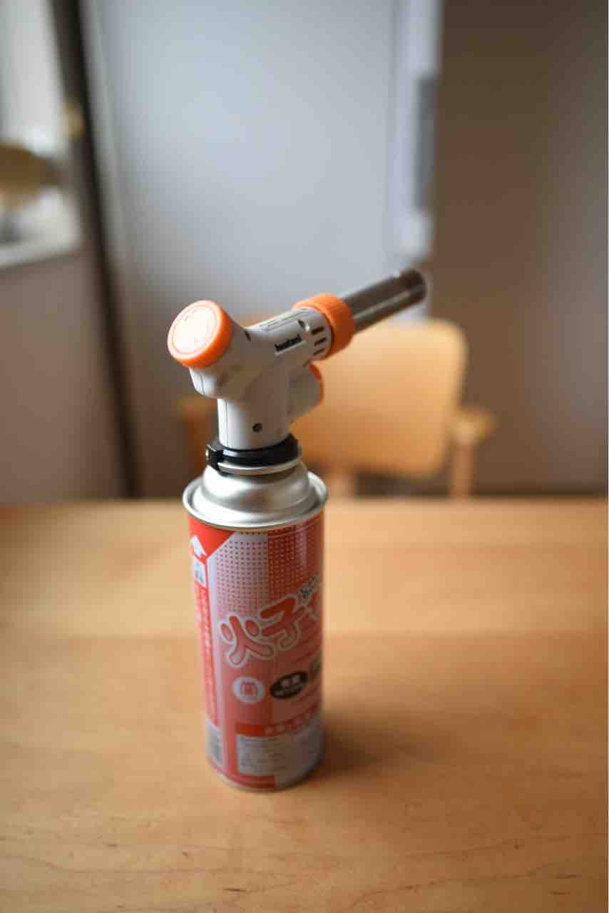 色々考えた結果、とりあえず、料理用のガストーチバーナーを使っています。私が使っているのは、イワタニの「カセットガス クッキングバーナー」と言うもので、元々は料理に焼き目を付けるために買いました。