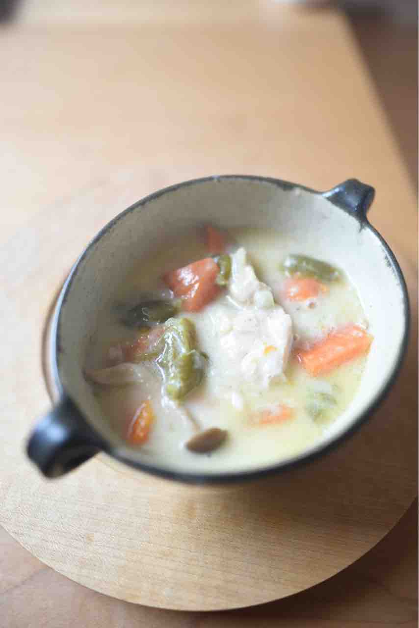 鶏もも肉、玉ねぎ、人参、ピーマン、じゃがいも、ぶなしめじ でチキンフリカッセも作りました。