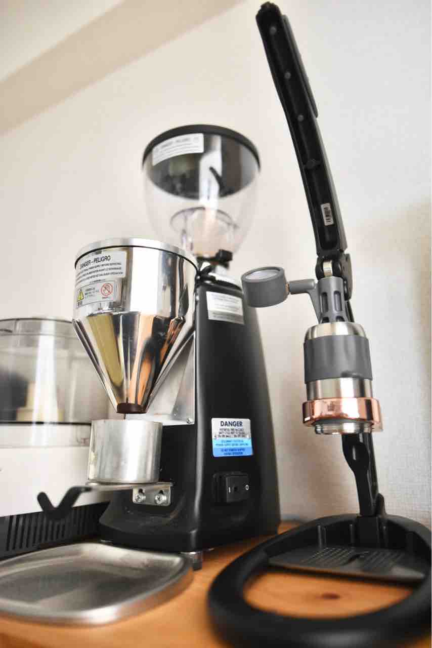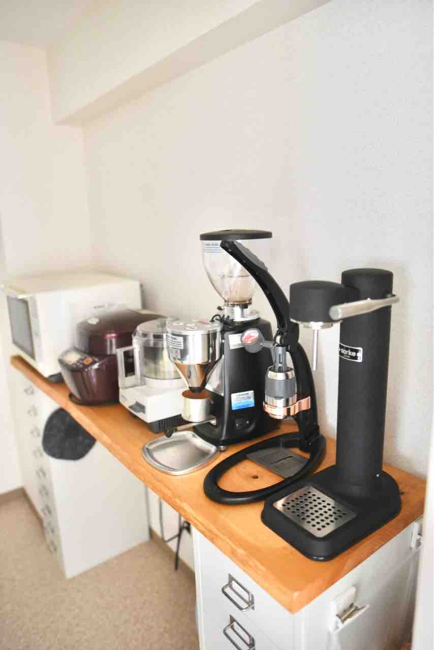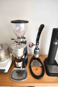 新居ではキッチンが少し広くなったので、出しっぱなしにすることに決めました。グラインダー(MAZZER mini electronic )の隣に据え置きしました。