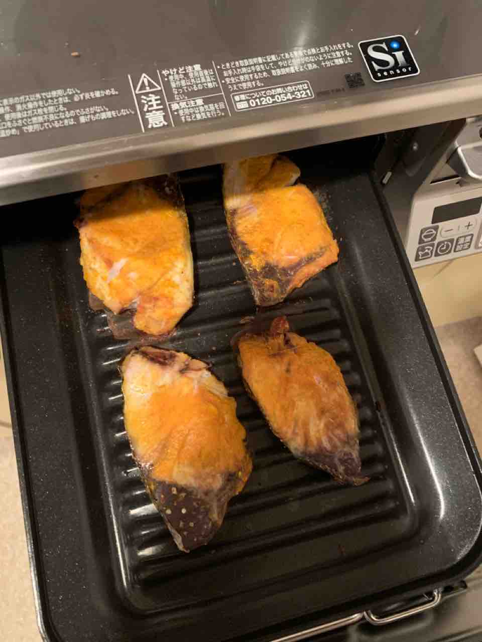 近所のスーパーに行ったら、天然鰤の切身が半額になっていたのですかさず買い、ターメリックと塩をまぶして焼き、ほぐして、スパイスカレーに入れました。