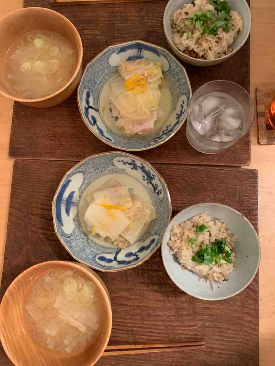 この日は、トリュフ風味ご飯、大根と里芋の味噌汁、豚バラ肉と白菜のミルフィーユ でした。