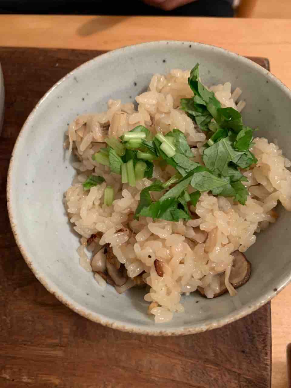 職場のフレンチのシェフから、「エノキとマッシュルームの炊き込みご飯にトリュフオイルをかけて食べるとおいしいよ。」と教えてもらったので早速作りました。出汁を引き、16杯(薄口醤油1, 赤酒1, 出汁16)の合わせ地で炊き。