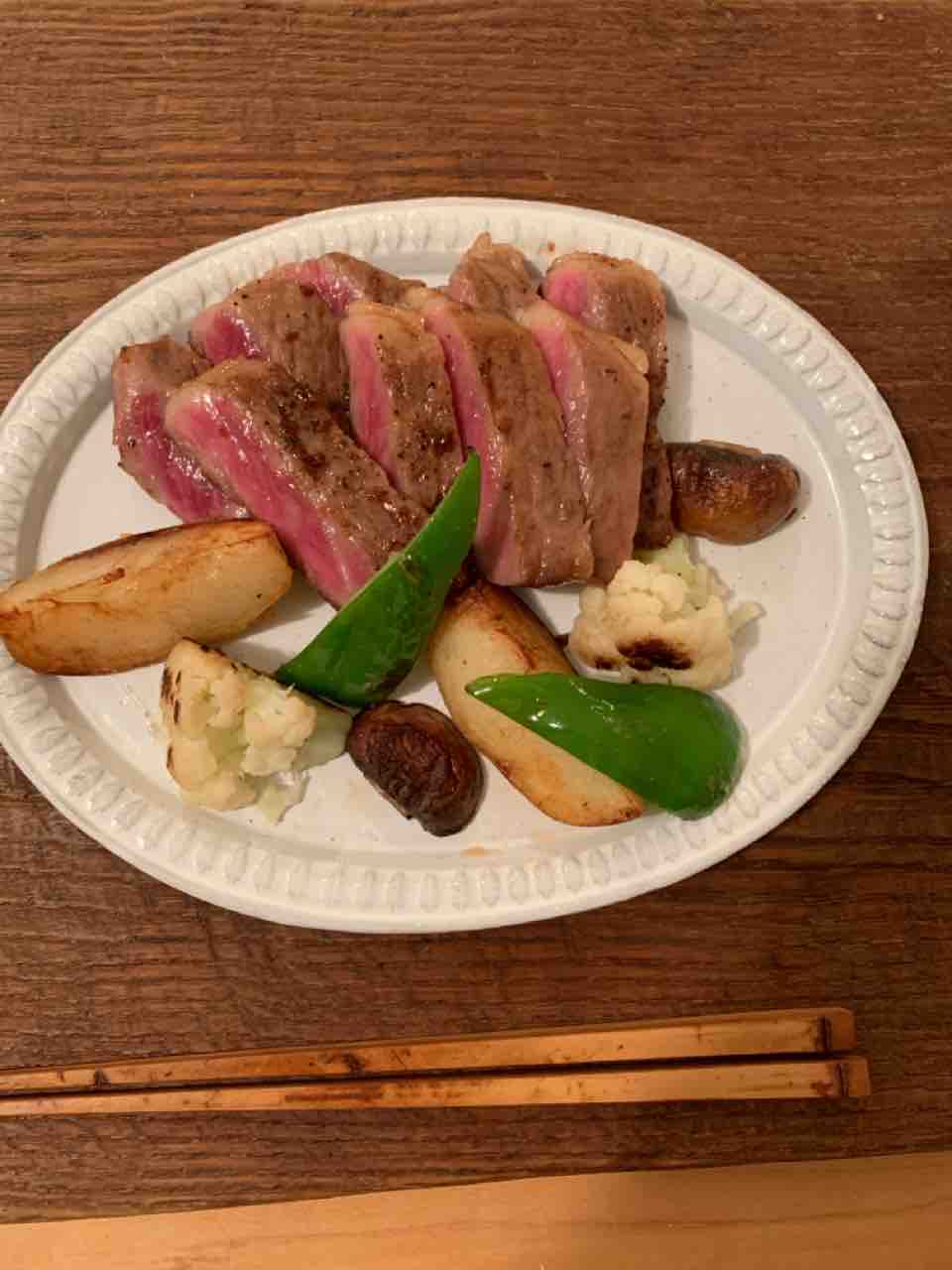 - 黒毛和牛A5サーロインステーキ&焼き野菜