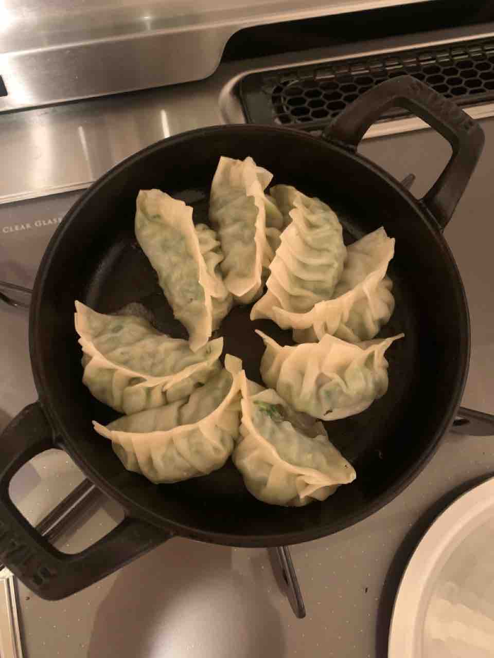 例えば餃子。予熱してから軽く油を引き、水を入れてフタをして蒸し焼きにして、水分が蒸発したところで最後油を回しがけて表面をパリパリにします。すごくくっつきやすい焼き方なのですが、この通り。