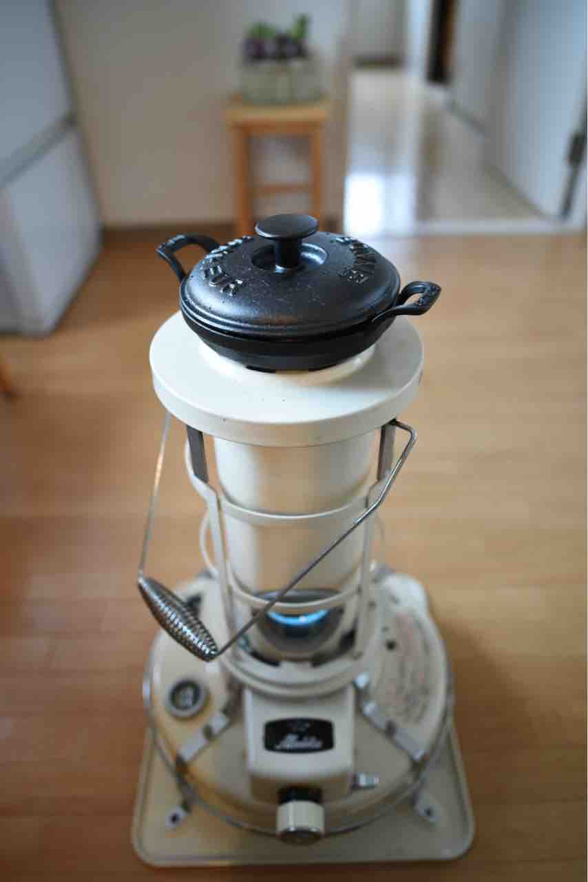 早速、ストウブ の鍋を石油ストーブに乗せて、紅はるかを転がしてフタをしました。1時間あまりでぶよぶよにやわらかい甘~い焼き芋が完成しました。