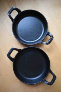 15cmの鍋用のフタが、このストウブ の16cmのディッシュに合うという、思いつきそうでなかなか思いつかないひらめきがあって実践したところ、ドンピシャでした。